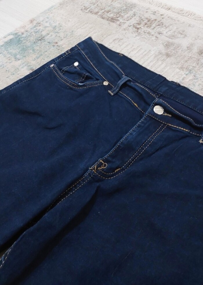 Lacivert kot pantolon kısa süre giyildi paçaların da ufak deformeler var İsterseniz kestirebilirsiniz temiz olur. Resimde belirttim.