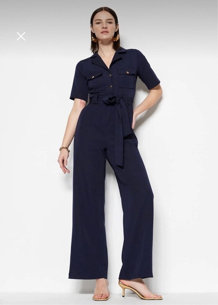 Lacivert Kuşaklı Gömlek Yakalı Tulum