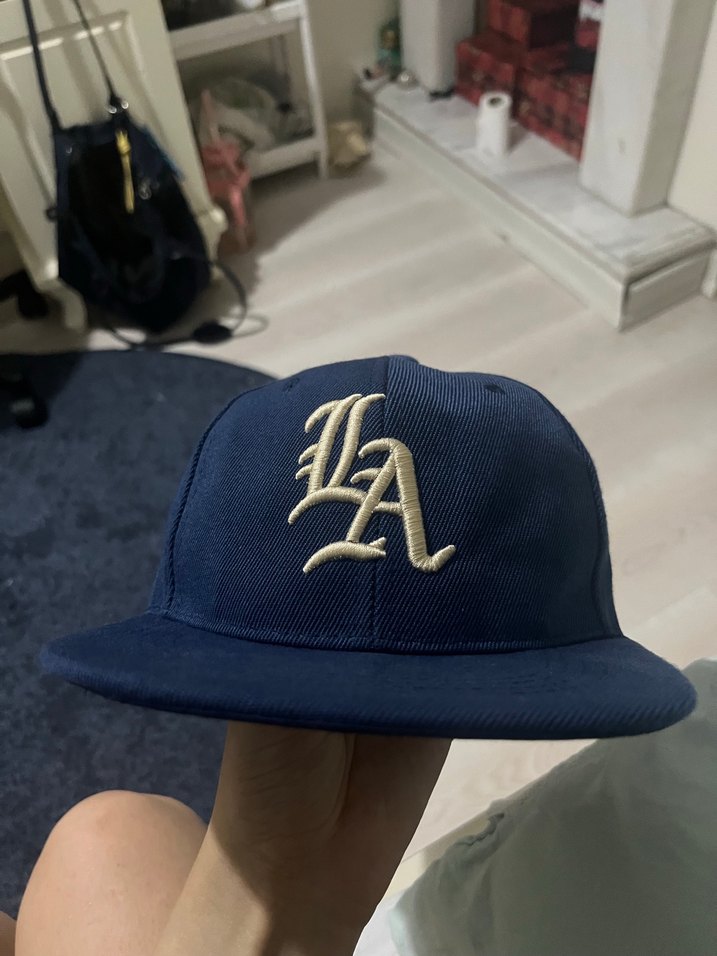 Düz vizörlü, nakış işlemeli LA logosu bulunan koyu mavi sokak stili ve eski Paris havası taşır.