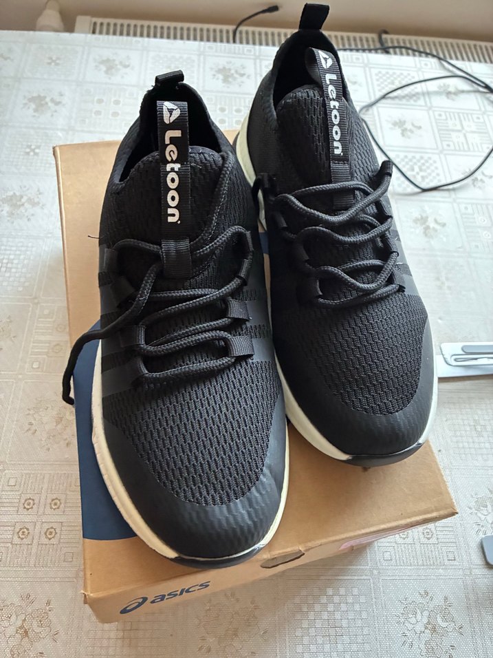 Siyah letoon bağcıklı spor ayakkabılar, düz tabanlı ve nefes alan üst yüzeye sahip günlük sokak stiline uygun rahat bir tasarımdır. Ürün sıfır hiç giyilmemmiştir 45 numaradır fakat 44’e daha iyi olur