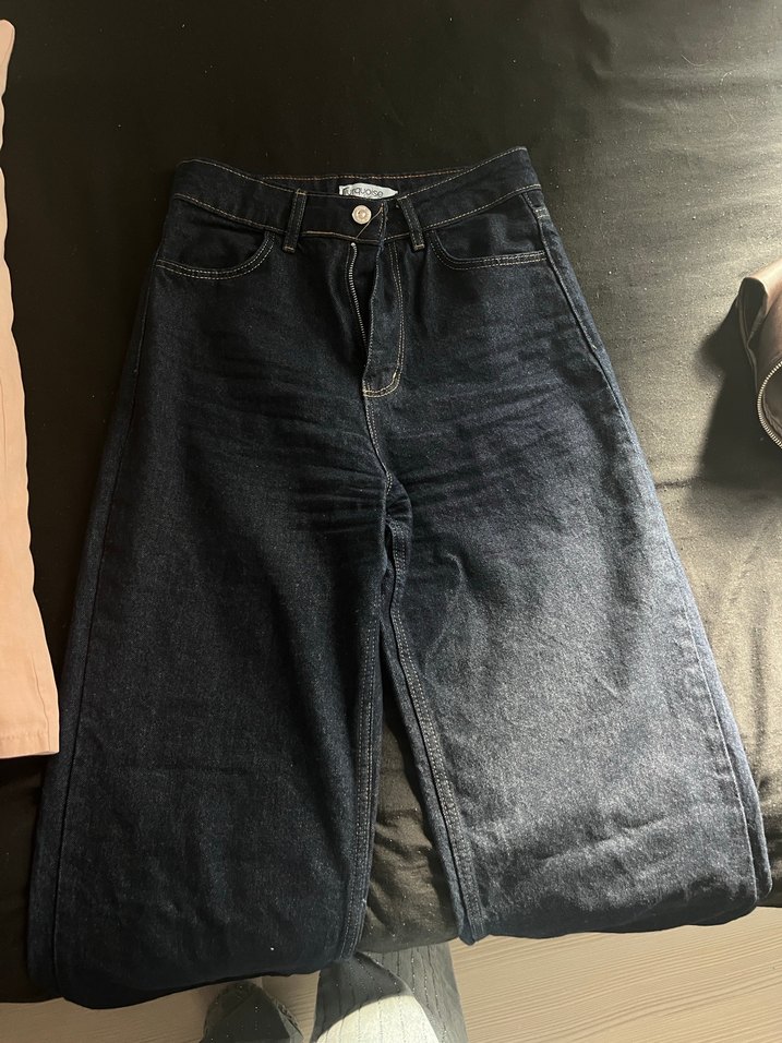 Lacivert renkte, bol kesim kot pantolon ve kot üst Rahat ve gündelik şıklık sunar, günlük kullanım için uygundur.