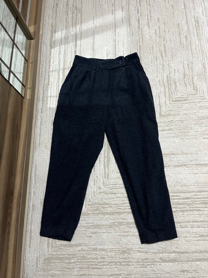 Lacivert renkli, midi boy, bol kesim pantolon. Minimalist ve normcore tarzıyla günlük kullanıma uygun rahat bir model. S beden.