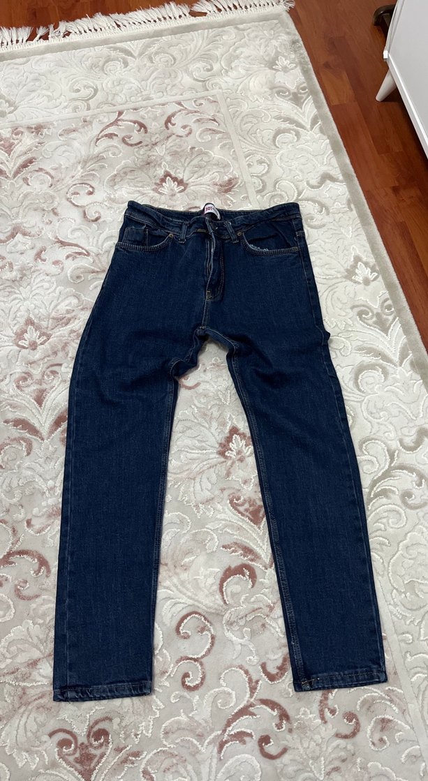 Lacivert koyu tonlarda, bol kesim ve midi boy uzunluğunda erkek kot pantolon. Desensiz ve rahat kesimiyle gündelik kullanıma uygun şık bir parça.