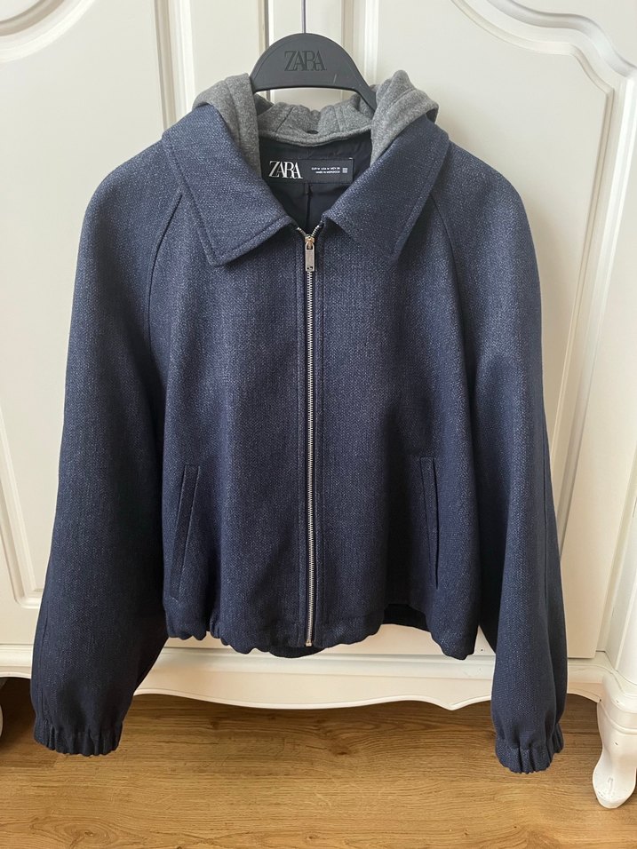 Lacivert renkte, fermuarlı ve notched yakalı midi uzunlukta, bol kesim denim ceket. Rahat ve günlük kullanıma uygun bir parça.