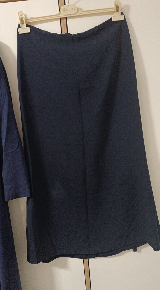 Lacivert Midi Drapeli Kadın Etek