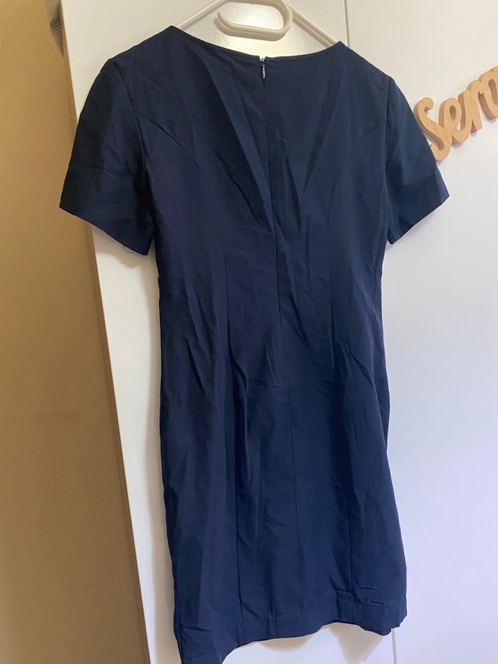 Lacivert midi elbise, kısa kollu, kayık yaka 34/44 Xs/Xl bedene kadar mevcuttur.
