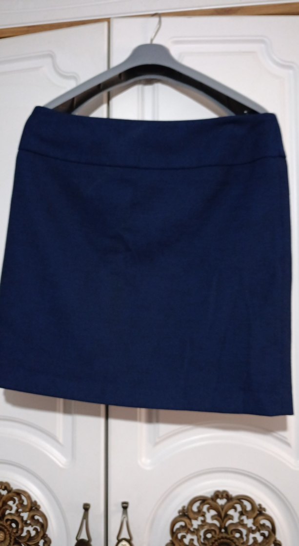 Lacivert, düz, sentetik kumaştan, midi boy, dar kesim Ofis ortamı için sade ve şık bir tercih. boy48 bel46