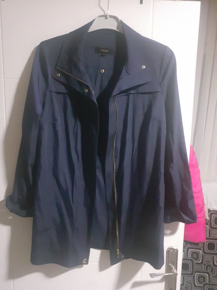 lacivert kadın ceketi, notched lapel yakalı ve uzun kollu, bol kesimdir. İpek gibi dokusu ve fermuarlı önüyle günlük kullanıma uygundur.1 2 kez giyildi sadece