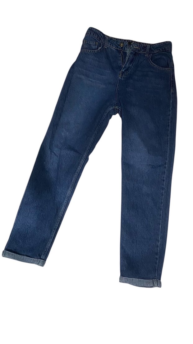 Koyu lacivert midi uzunlukta, regular fit kadın denim jean. Günlük kullanım için rahat ve şık, sokak modasına uygun bir tasarım.