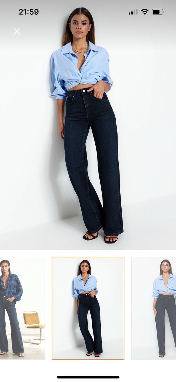 Lacivert renkli, normal kesim ve midi boy kadın denim pantolon. Günlük sokak stili için rahat ve şık bir tercih.