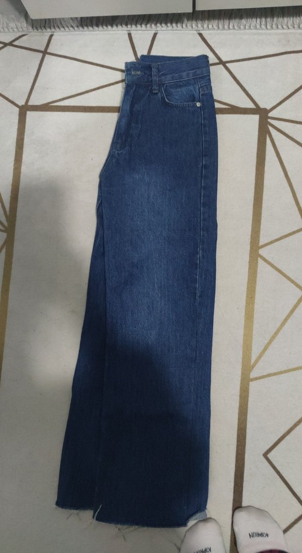 Lacivert midi uzunlukta, regular fit denim pantolon. Günlük kullanıma uygun sade ve rahat tasarım, karanlık tonlarda şık bir görünüm sunar.