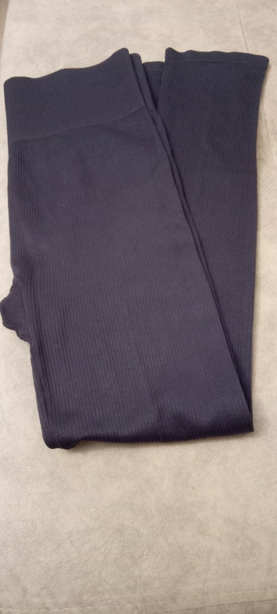 Lacivert, yumuşak sentetik kumaştan yapılmış, pileli dokulu ve vücuda oturan midi tayt, günlük rahat kullanım için uygundur.