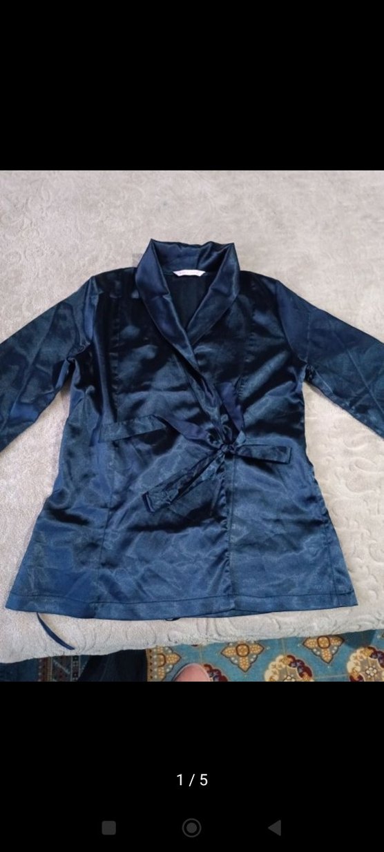 Lacivert midi uzunlukta, uzun kollu ve regular fit kadın sabahlık