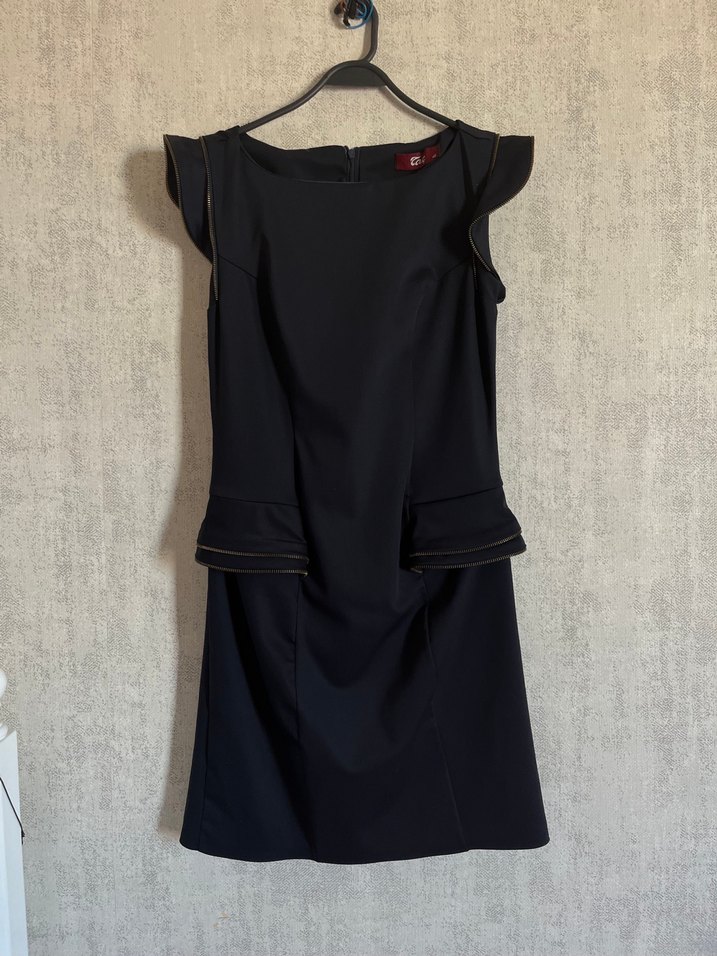 Kolsuz, lacivert midi elbise, kemer detaylı, vücuda oturan kesime sahiptir. Ofis ve goth tarzı için uygundur. Ürün yepyeni, lekesi defosu yok. Üst vücudu oturuyor, 38-40 bedene uygun çok şık bir ofis elbisesi. Taşındığım için tüm ürünleri uyguna koydum, diğer ürünlere bakmayı unutmayın. Makul teklifleri kabul ediyorum. ✨