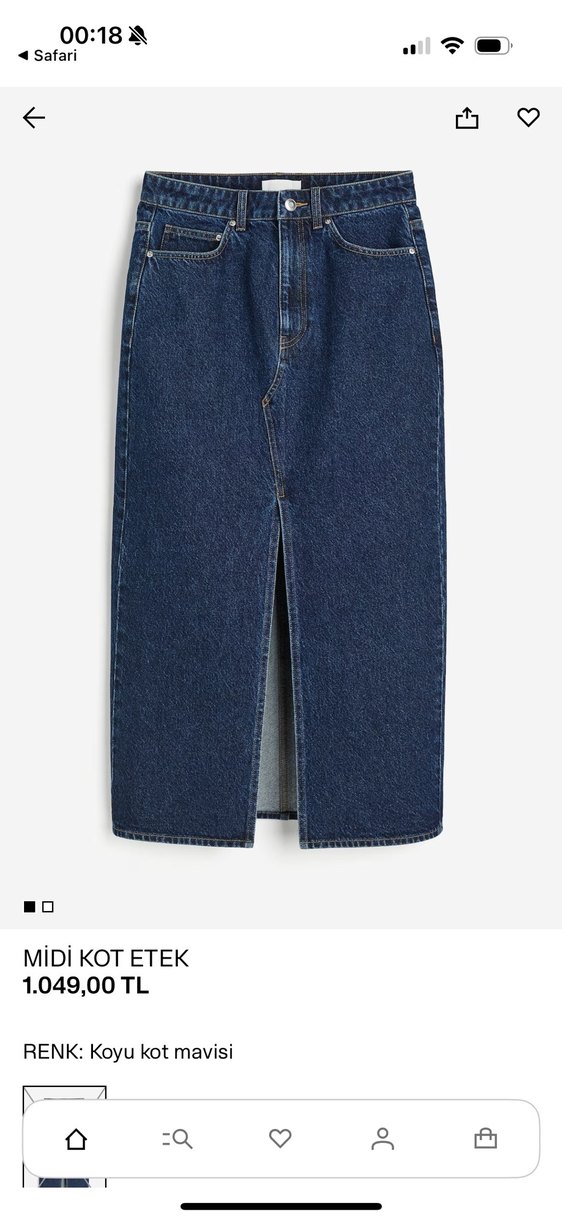 Lacivert kot kumaştan yapılmış, midi boyda ve kalem kesim bir etektir. Ön kısmında yırtmaç bulunur, günlük kullanıma uygundur. Sadece 1 kere giydim ürünün bir sıkıntısı yoktur. İlk fotoğrafla etek aynı sadece renk koyu lacivert değil normal kot rengi (örnek olması için ekledim orijinal görseli)