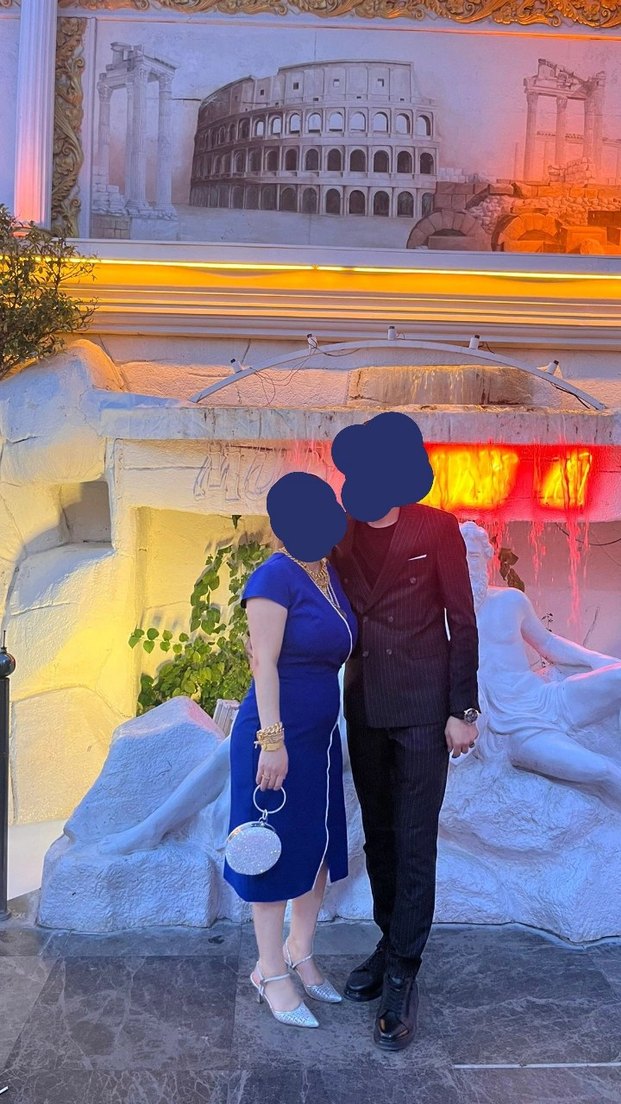 Lacivert tie-dye desenli, notç yaka ve yırtmaçlı, kolsuz, vücuda oturan midi elbise, sokak modası ve Paris tarzını yansıtıyor.