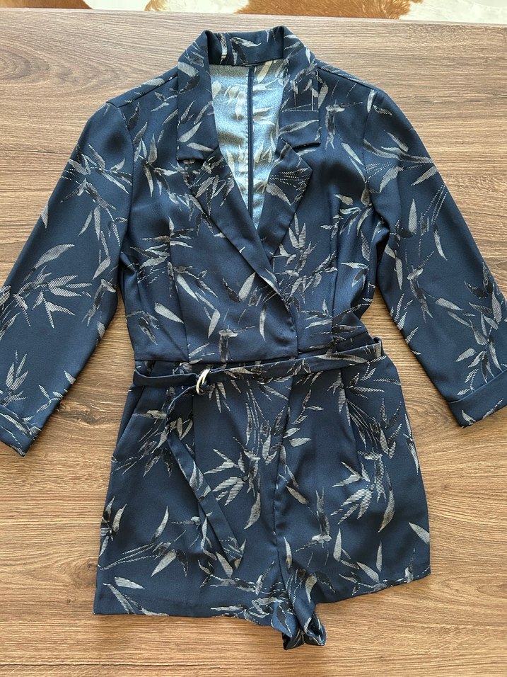 Ceket yakalı, beli kendinden kemerli,cepli,fakir kol,mini tulum. Sadece bir kez giyildi. Topshop marka. Kol boyu: 30 cm Boyu (omuzdan): 69 cm