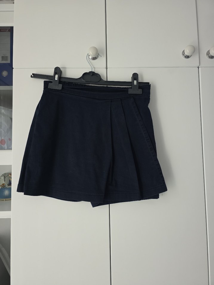 Lacivert Mini Kot Etek Şort Pilili