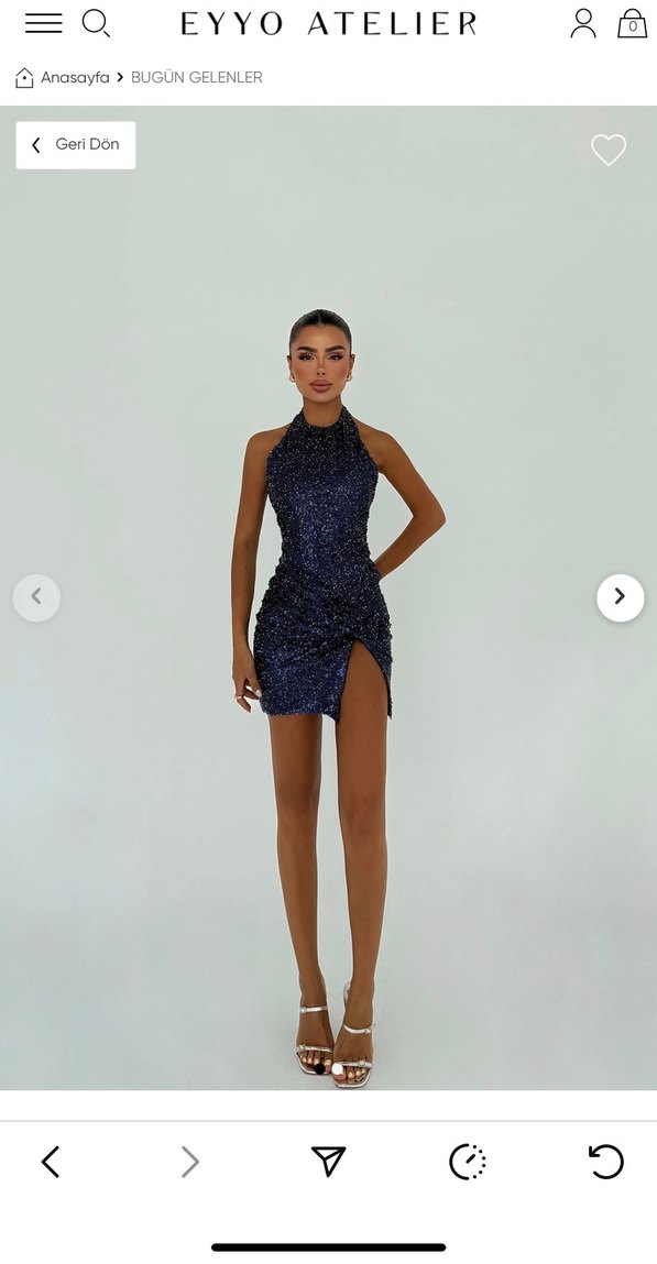 Sadece bir kere, iki saatligine kullandım. Yenidir.Lacivert mini boy, yılan desenli payetlerle süslenmiş, straplez yakalı, kolsuz ve vücuda oturan modern abiye elbise.