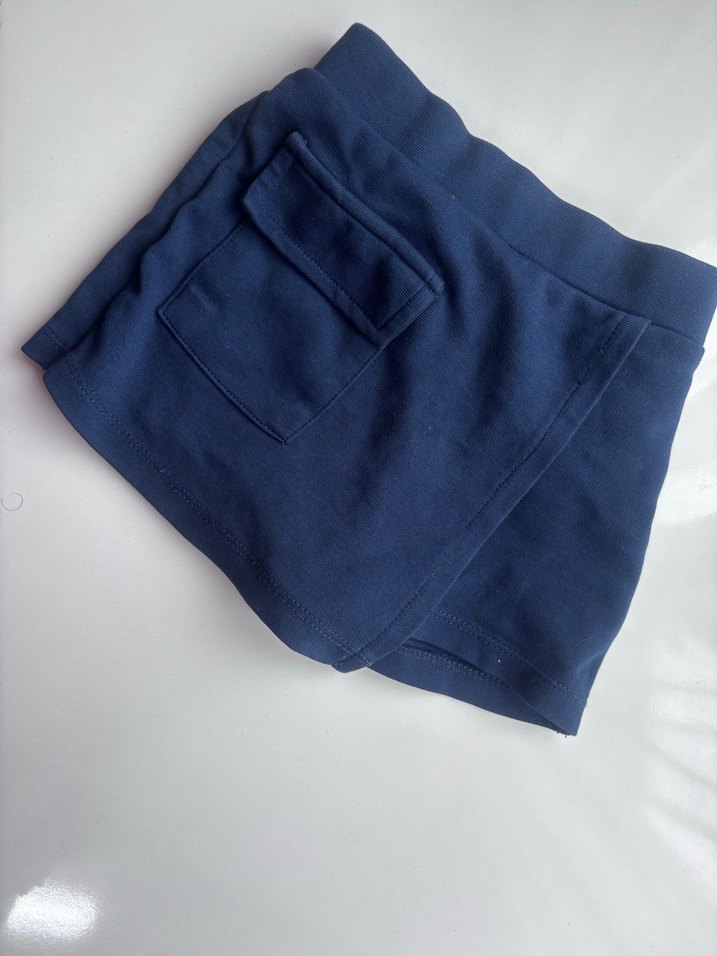 Lacivert renkte, bol kesim ve yumuşak, sıcak kumaştan mini uzunlukta şortu, arka cep detaylı, rahat sokak stili sunar. 1/2 yaş 86/92 cm