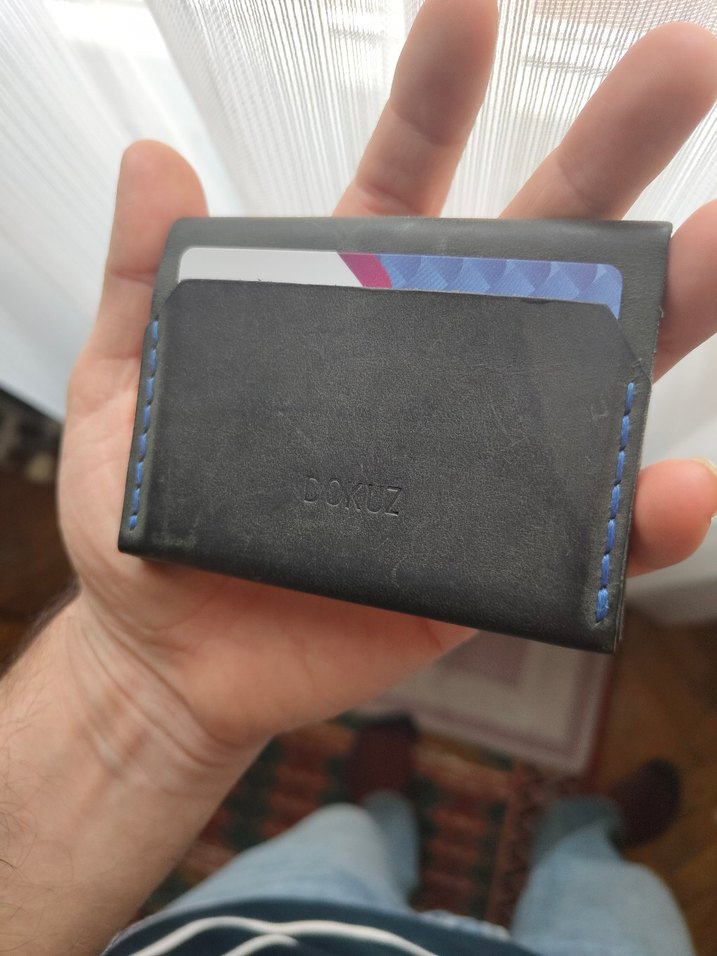 Lacivert renkte, baskılı detaylara sahip minimalist erkek cüzdan. Düz ve sade tasarımıyla günlük kullanım için uygundur. #erkek #deri #kartlık #cüzdan