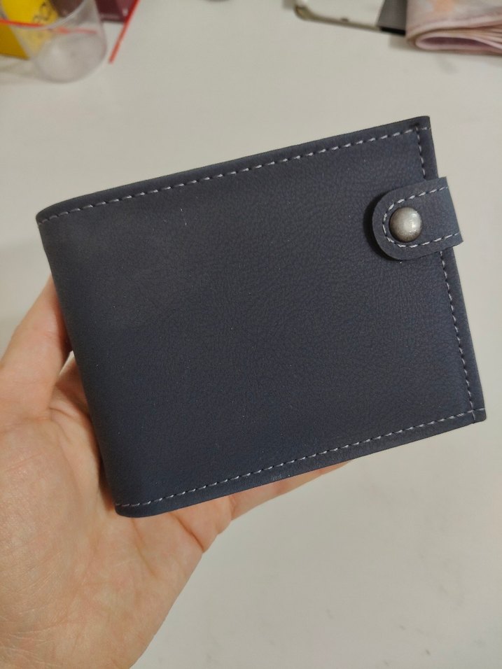 Lacivert, çıtçıtlı kapaklı, minimalist erkek cüzdanı. Basit ve kullanışlı tasarım sunar.