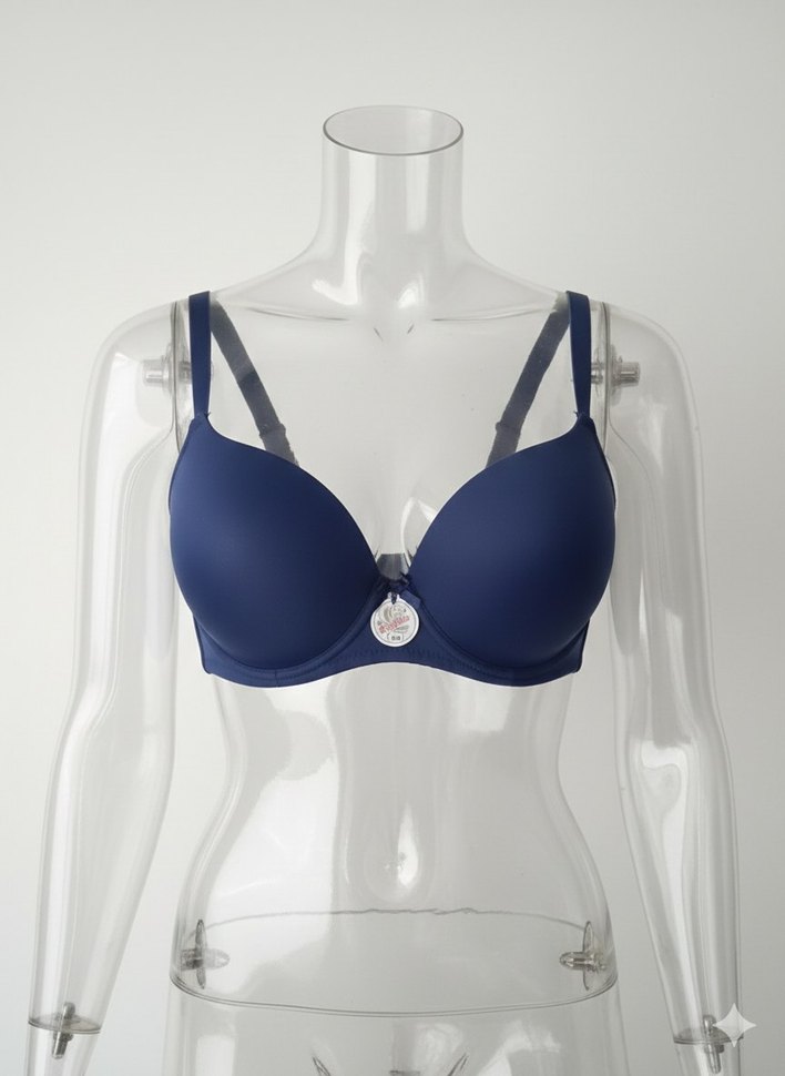 Lacivert renkte, desen içermeyen minimalist sütyen. Ayarlanabilir askılarıyla rahat kullanım sunar.