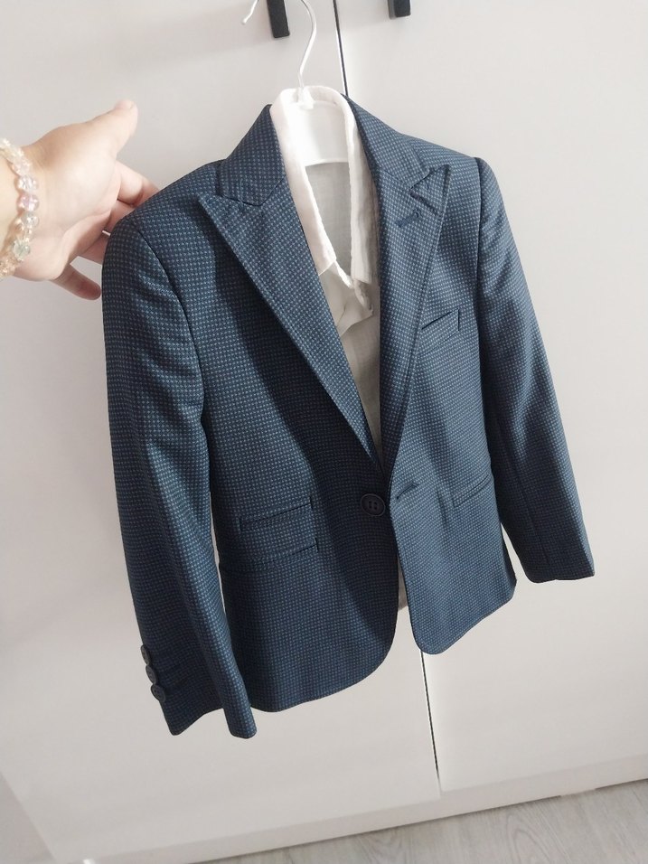 lacivert renkte, düğmeli ve klasik yaka detaylı çocuk takım ceketi. Modern klasik tarzda, uzun kollu ve rahat kesim.içine beyaz kısa kollu gömlekle birlikte göndereceğim