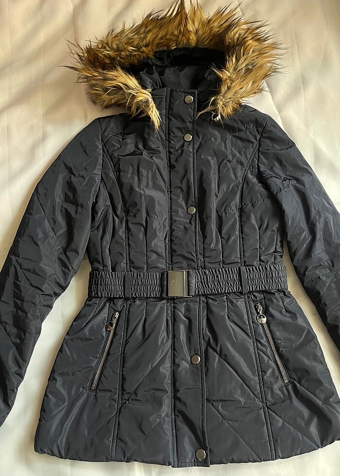 Kışlık beli kemerli istenirse şapkası çıkabilir