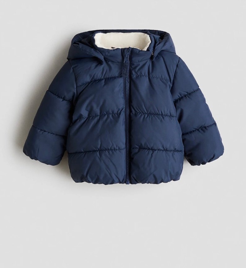 Lacivert, kapüşonlu ve içi sıcak tutan kumaştan yapılmış erkek çocuk montudur.