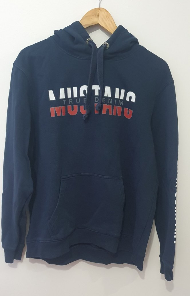 Lacivert renkli, baskılı Mustang logolu, kapüşonlu ve ön cepli uzun kollu sweatshirt. Yumuşak ve sıcak kumaştan, spor ve günlük kullanıma uygun.