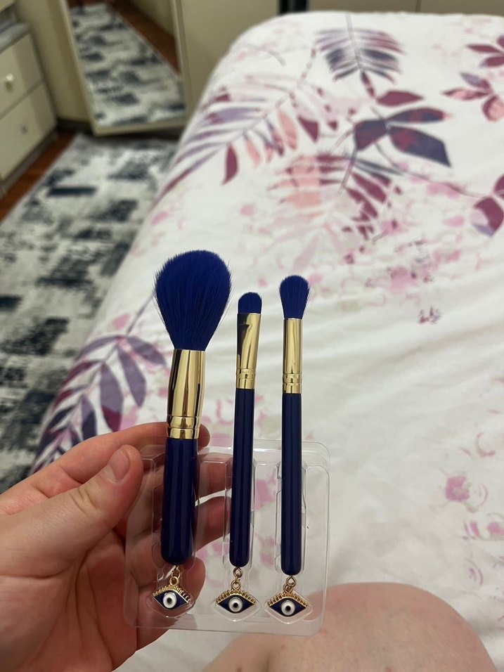 • Ultra yumuşak, yoğun kıl yapısı • Allık – far – dağıtma için ideal 3’lü kombin • Gold detaylı premium sap tasarımı • Uçlarında nazar boncuğu charm bulunur • Hologram kalpli kılıfıyla birlikte gönderilir • Sıfır, tertemiz, hediye için de çok şık