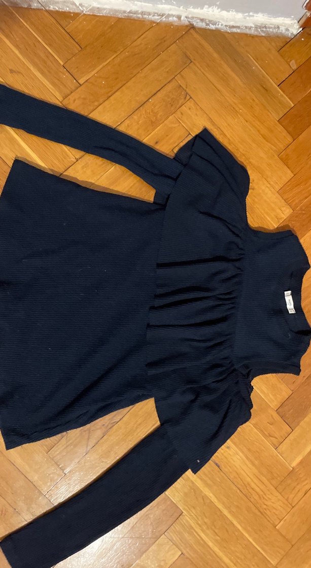 Lacivert omzu açık fırfırlı mango kazak .fırfır detaylı günlük rahat kullanım için uygundur.