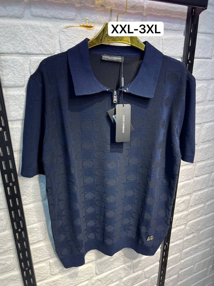 Lacivert örgü desenli, yakalı ve kısa kollu polo tişört. Bol kesim ve baskılı desene sahip, XXL-3XL beden aralığında.