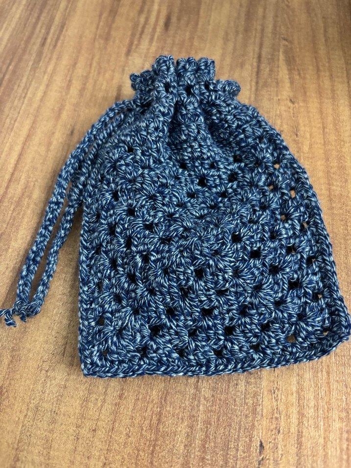 Lacivert renkte, örgü dokulu, ipli kapama detaylı kese. Günlük kullanıma uygun, rahat bohem tarzda bir modeldir.