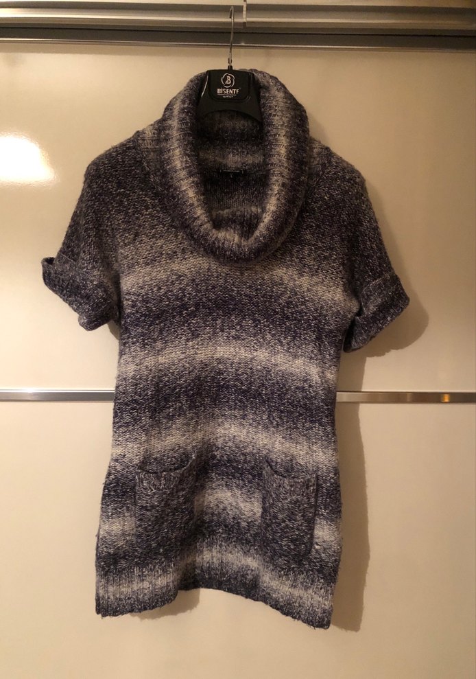Lacivert renkli, kısa kollu ve boğazlı örgü triko. Salaş kesim, batik desenli ve midi boyda, önünde iki cep bulunur. Rahat ve şık bir görünüm sunar. İki koltuk aradım52,boy 70cm