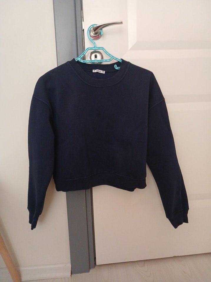 Lacivert renkli, yuvarlak yaka ve uzun kollu, rahat kesimli sweatshirt. Yumuşak ve sıcak kumaştan, minimalist sokak stili için uygundur.