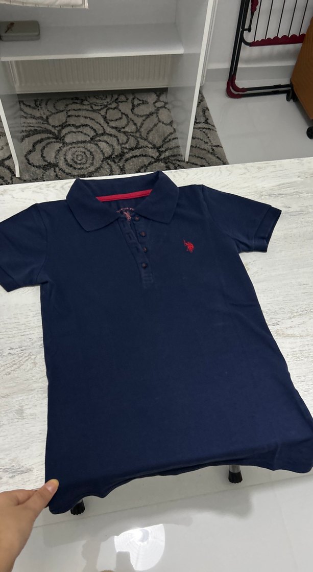 Pamuklu kumaştan üretilmiş, kısa kollu ve yakalı, düğmeli kapamalı, lacivert renkli, baskılı detaylı, fit kesim erkek polo tişört.