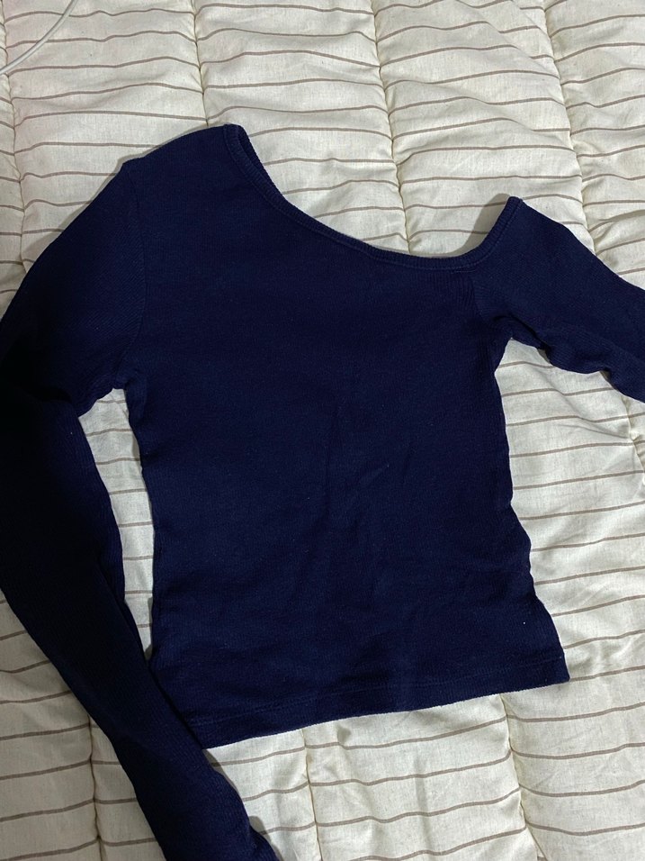 Lacivert Pamuklu Uzun Kollu V Yaka Hamile Bluzu
