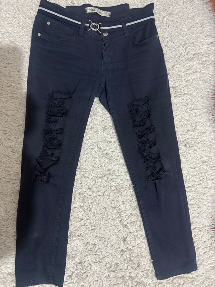 Bel 42 cm.Basen 45 cm.Boy 82 cm.Keten kumaş likralı Lacivert renk ön yırtık tarz pantolon hiç bir defo yok yeniden farksız dolap boşaltıyorum fiyatını uygun tuttum ADL den aldığımı düşünüyorum kemeri ben taktım o da hediyesi