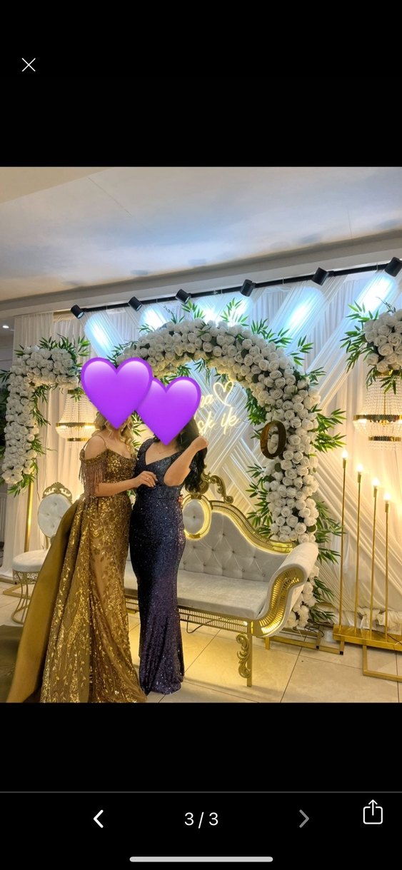 Sadece bir kere nişanda giyildi lacivert yırtmaç detaylı gece elbisesi