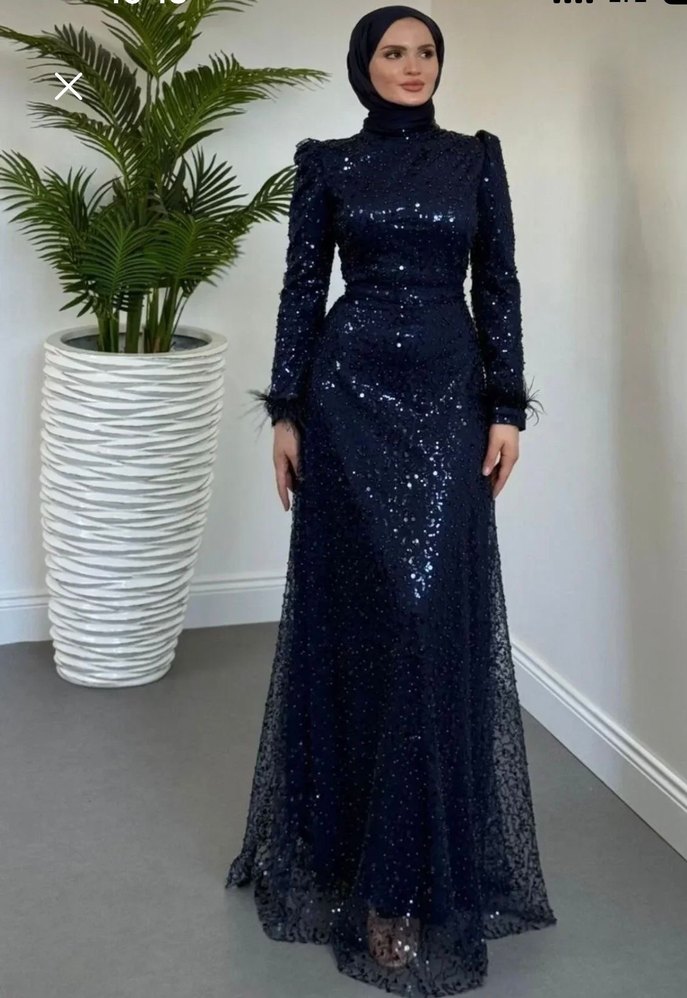 Lacivert Payetli Uzun Abiye Elbise 38 40 beden uyumlu satılık