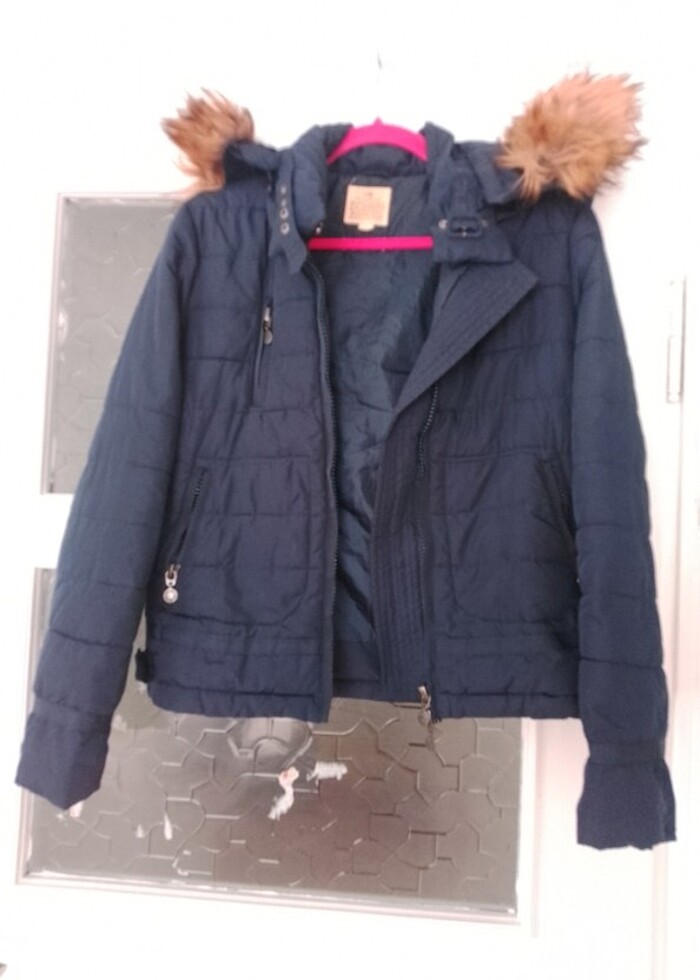 Lacivert peluş kapşonlu mont çok şık az şapka çıkarılabilir