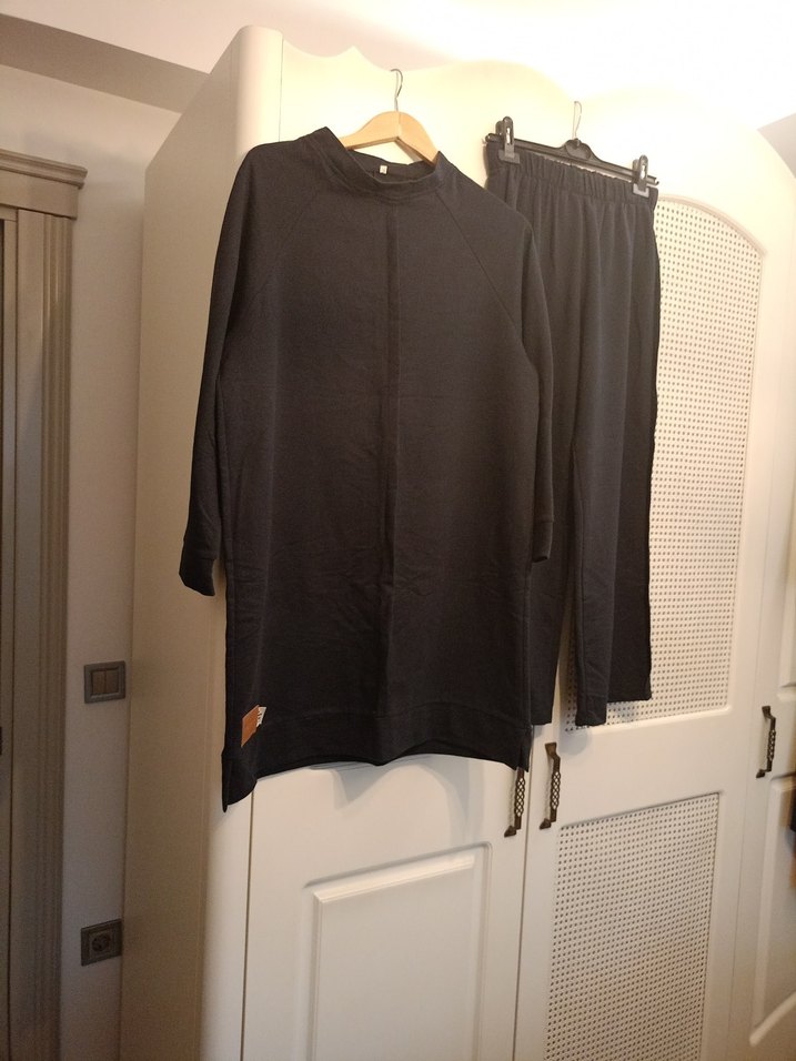 lacivert iki iplik penye eşofmanTakımı 40-44 beden aralığına uygun, aşt boy 95 cm üst kol altı genişliği tek yön 55 cm..günboyu ile konfor ve şıklık sunar.