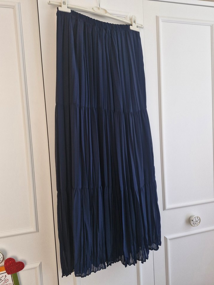 Lacivert Pileli Uzun şifon Etek