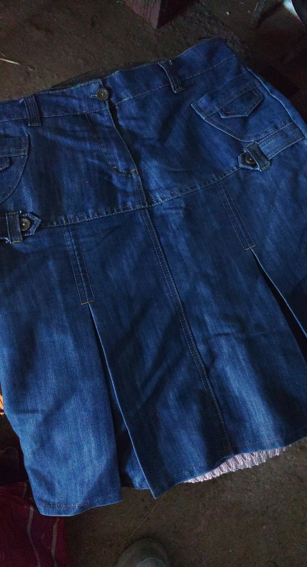 Lacivert parlak renkte, pilili, midi uzunlukta, bol kesim hamile kot eteği. Günlük rahat kullanıma uygundur.