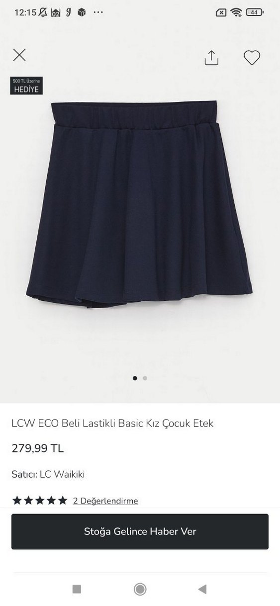 1 kere giyildi. Lacivert midi boy, pilili ve lastikli bel yapısına sahip, yumuşak kumaştan üretilmiş rahat bir etek.