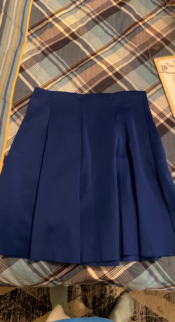 Lacivert renkte, sentetik kumaştan üretilmiş, pilili ve rahat kesime sahip midi etek.