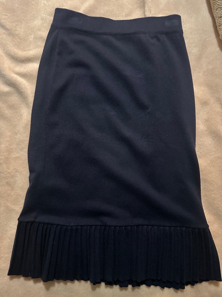 Lacivert renkli, pilili etek ucu ve düz tasarıma sahip, hamileler için uygun, şık ve dar kesim etek. Ofis kullanımı için uygundur. ✨ Tam diz boyundadır. Hiçbir sorunu yoktur.