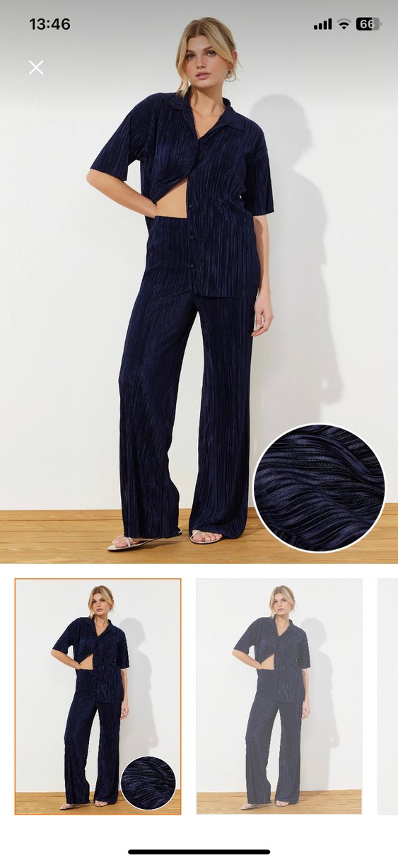 Lacivert Pilili Midi Kadın Kumaş Pantolon takım